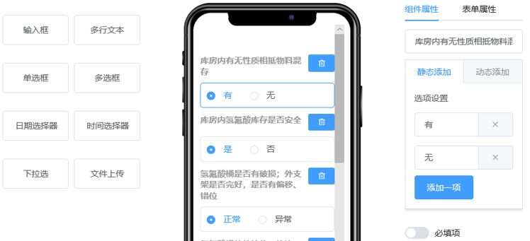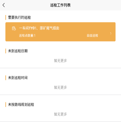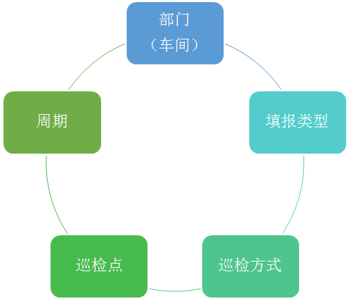 ![]() 1) 丰富的周期设置,针对不同巡检频次的巡检点。满足所有巡检点的巡检需求。 ![]() 2) 自定义巡检类型,由于职能的不同,各工种或者各部门对同一个巡检点的关注点都会不同。通过对同一个巡检点配置不同的巡检类型填报表单,满足各个职能对相同巡检点的巡检要求。 ![]() 3) 规划巡检工作,根据企业现场的实际情况,每个部门或者车间可以根据各自的巡检工作要求,通过巡检周期、填报类型、巡检点的灵活组合,生成多条巡检工作,再结合巡检方式,确定是否需要按照顺序路线开展巡检工作,形成完整的巡检工作。明确:谁巡检—什么时候巡检—检查哪里—检查什么内容—是否有路线要求。 ![]() 4) 引导式巡检,通过展开巡检工作前的待办页面,扫码后的巡检工作列表页面,以及填报时的表单页面,一步一步引导一线员工什么时候、做什么、怎么做。 5) 定位识别,通过信标杜绝代签、补签、不去现场的问题。 6) 异常报警,巡检员填报了异常的巡检结果时,主动推送给后台的管理人员。便于管理人员第一时间对异常情况做出整改指示。