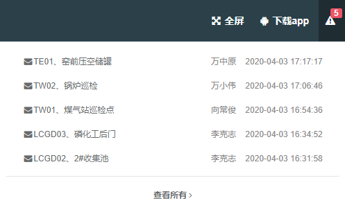 | 企业巡检管理系统是将互联网优势与传统巡检工作相结合,利用信息化手段帮助企业更好的规范巡检工作、提升巡检的效率、全面降低安全生产风险的综合性管理系统。 本系统适用于对巡检功能有需求的各行各业,尤其是对巡检有非常高要求和频次的制造业。杜绝传统巡检工作时面临的代签、补签、不去现场、无据可查的问题。 ![]() ![]()