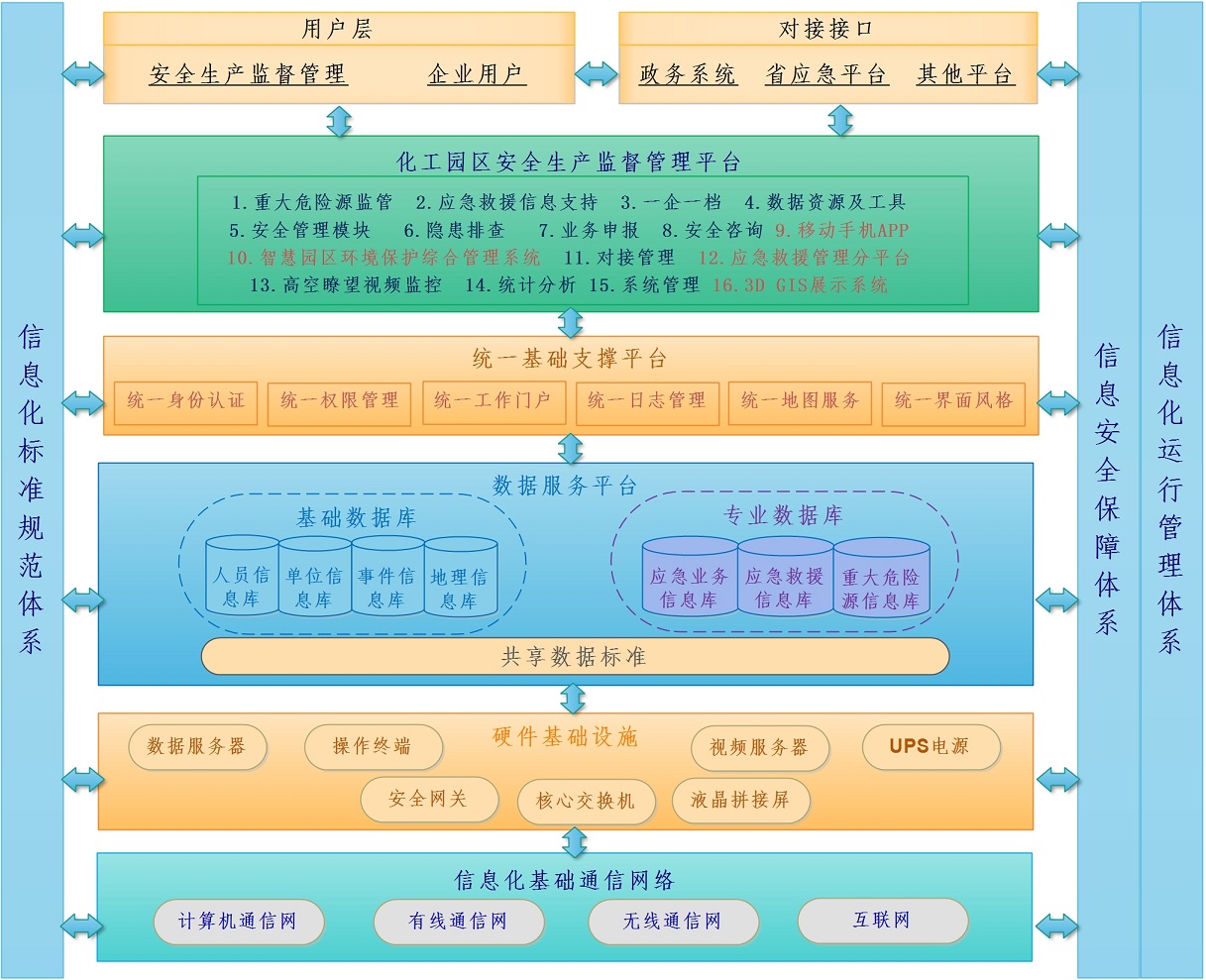 系统围绕安全生产监管监察工作需求,从横向和纵向整合、加强现有业务系统的功能着手,以提升信息系统对业务的支撑功能为核心,充分依托电子政务公共资源,围绕安全生产监管、应急救援和公共服务等核心业务,整合集成现有系统,建设功能齐全、可扩展、可定制、业务模式灵活的涵盖安全生产监管、应急管理、辅助决策、公共服务和行政管理等五大业务方向的安监平台。该平台的构建,对于安全生产的前期有效预防、中期的合理监管、后期的快速处理都有巨大的意义。